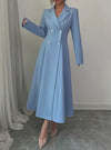 Elegant Sky Blue Coat Style Abaya – Premium Double Breasted Design | INFINITE VIBES UAE